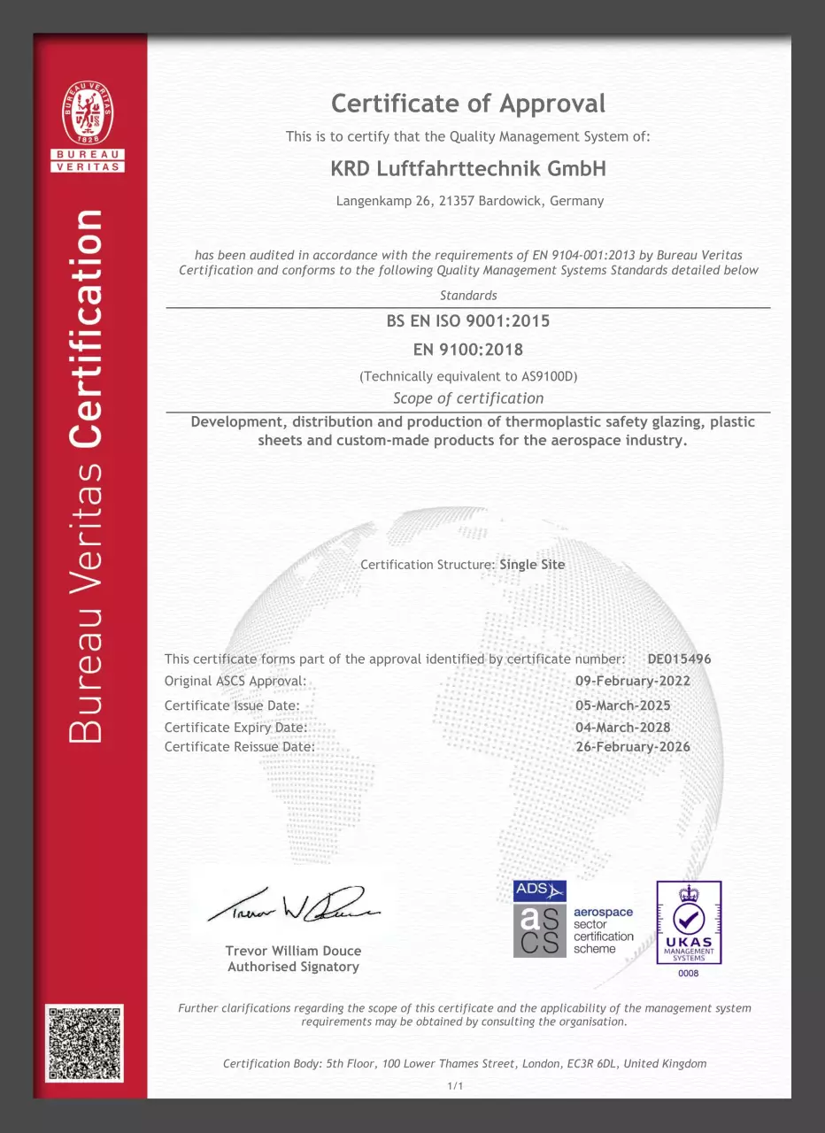 QM Zertifikat nach BS EN 9100:2018